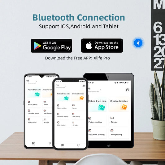 Portable Printer, Mini Pocket Wireless Bluetooth Thermal Printers with 6 Rolls Printing Paper for Android Ios Smartphone, BT Inkless Printing Gift for Label Receipt Photo Notes Study Home Office